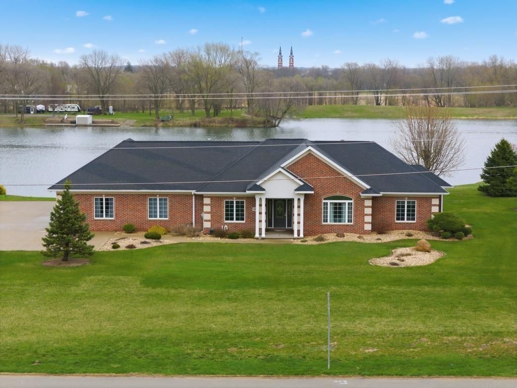 Set on nearly 1.5 acres of beautiful water frontage in the heart of Dyersville, Iowa, this stunning custom-built, all-brick ranch home offers the perfect blend of luxury, comfort, and lifestyle. Situated on a private pond, the property provides a rare opp