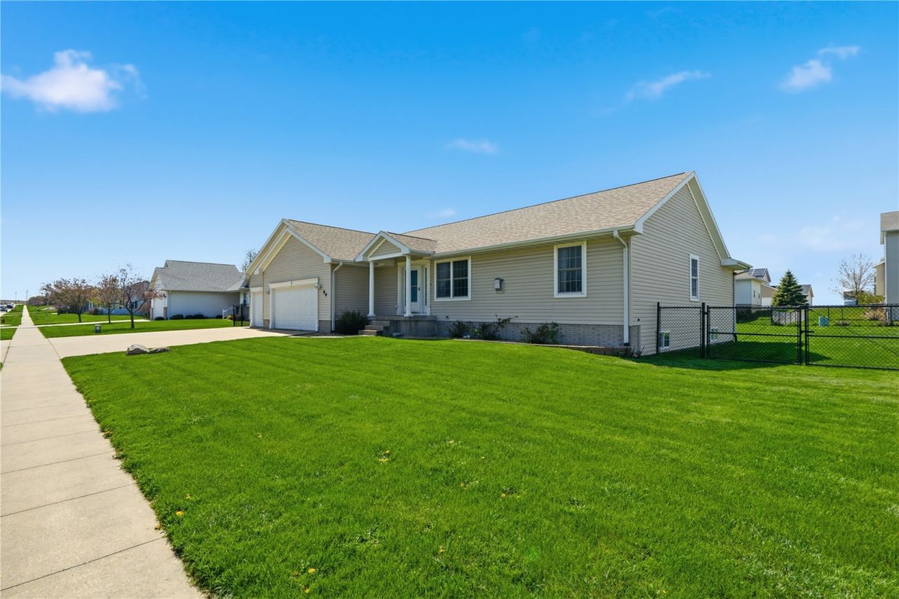 Located just minutes from the school, this spacious ranch offers over 3,600 sq ft of well-designed living space with 4 bedrooms (3 with walk-in closets), 3.5 baths, and a heated 3-stall garage. The private primary suite is tucked away for added privacy and features a walk-in shower, jetted tub, dual sinks, and a generous walk-in closet. The living room showcases a vaulted ceiling and a cozy gas fireplace, flowing seamlessly into the kitchen with stainless steel appliances (newer microwave/range), abundant cabinetry and counter space, a center island with breakfast bar, and a deep walk-in pantry. Formal dining leads to a large deck and patio overlooking a level, fenced backyard complete with an above-ground pool and a wide side gate?perfect for storing a camper or toys. A main floor laundry room with a half bath adds everyday convenience just off the garage. The finished lower level is ideal for entertaining, featuring a spacious rec room with a bar, an additional bedroom with a walk-in closet, a full bath, and a versatile bonus room for storage or workspace. Additional highlights include a whole-house generator, central vacuum system, new water heater. This home offers great space in a great community!